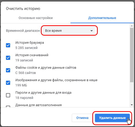 Временные файлы (Кэш) — это хранящиеся на вашем компьютере файлы, призванные ускорить загрузку часто посещаемых страниц. К ним относятся стили CSS, графическое содержимое и пр. Однако, иногда объемный и старый кэш вносит прямо противоположный эффект. В этом случае стоит удалить удалить временные файлы (очистить).